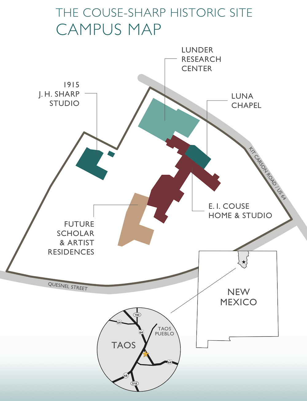 Through its archives, collections, and programming, the Couse-Sharp Historic Site preserves and interprets Taos’ crossroads of cultures, promoting and facilitating research, education, and new perspectives on the Taos Society of Artists, early artists of Taos, and regional and Indigenous communities in relation to the greater story of the multicultural American West.