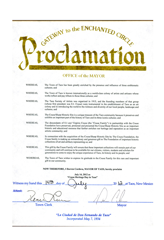 Couse Foundation / Proclamation